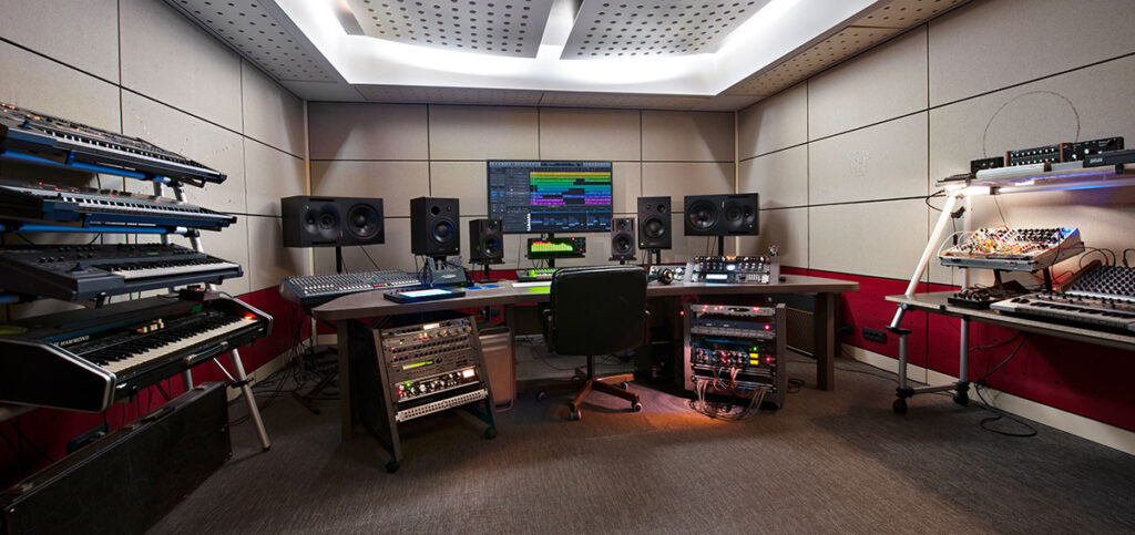 Entra in una scuola dove creatività e tecnica si incontrano: un campus luminoso con studi di registrazione, sale prove, teatri, set televisivi e spazi dedicati alla produzione sonora e performativa.