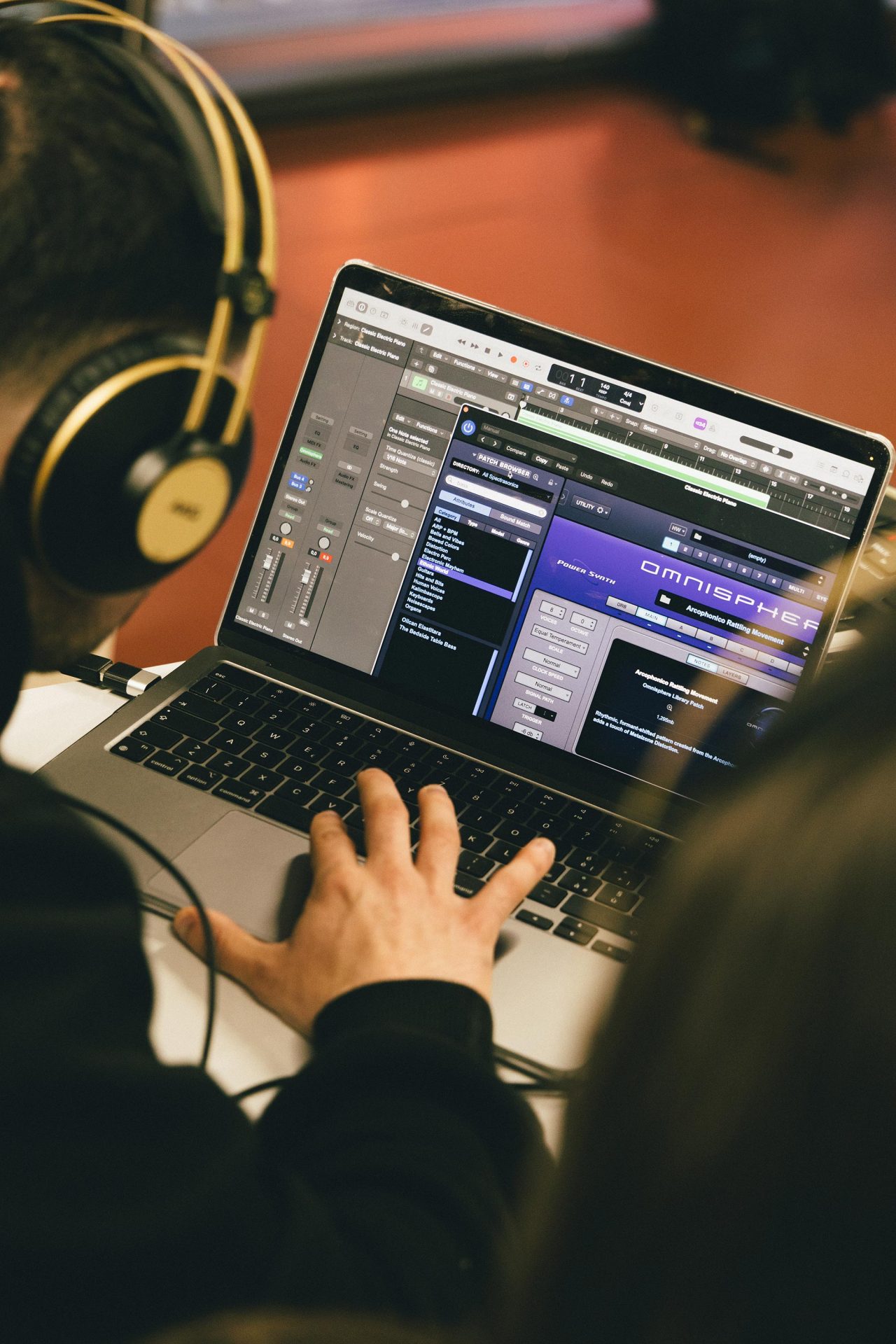 Nel primo anno costruisci basi solide tra teoria e pratica. Studi Teoria e Linguaggio musicale (lettura partitura, fondamentali), lavori in DAW con Logic Pro e Ableton Live, produci elettronica e beat making. Sviluppi sound design (sintesi e processamento), suoni pianoforte e tastiere e uno strumento (voce). Con Tecnico del Suono affronti microfonazione e live, fai musica d’insieme, esplori la storia della musica moderna.